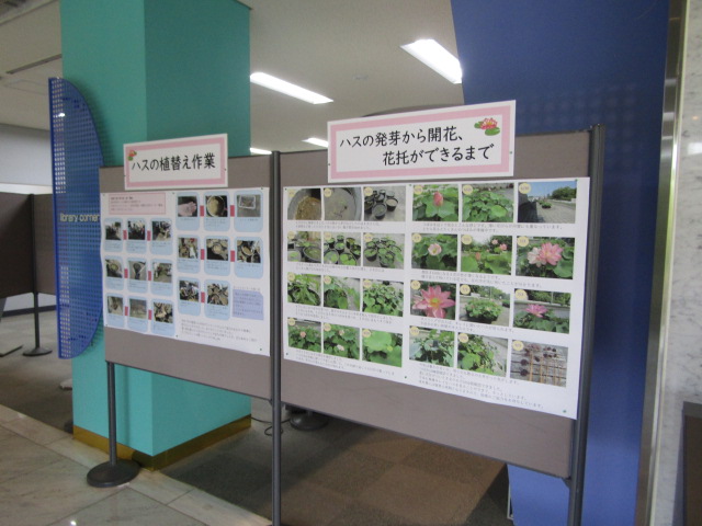 今年度のハスの成長の様子をパネルにしました!ご来館の際には是非ご覧ください。