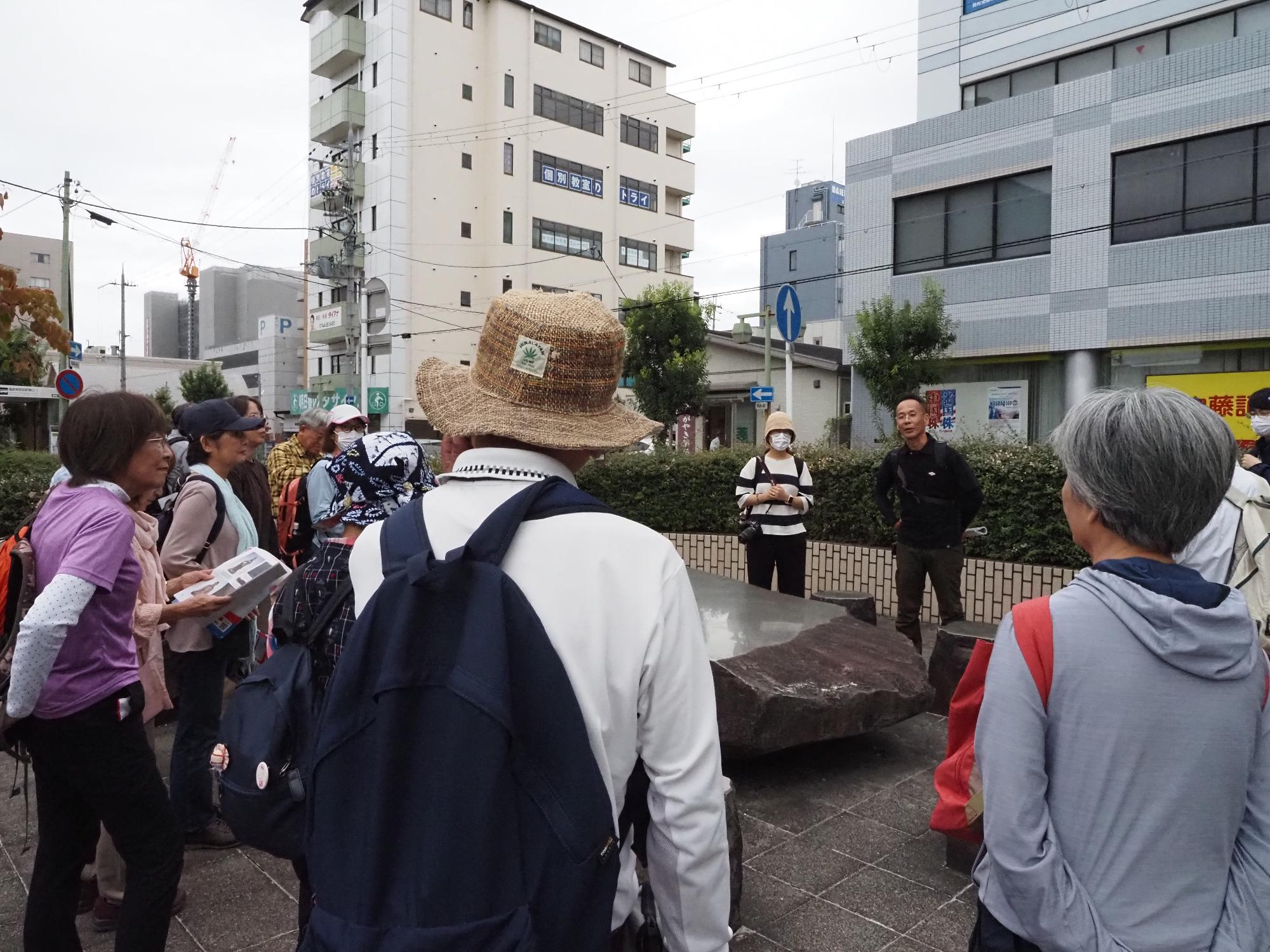 この日は朝から電車が遅れたり、道中も雨もぱらつくなどいろいろありましたが、今回は約9キロの道のりに、見学場所も多く参加者の皆さんも楽しんでいただけと思います。