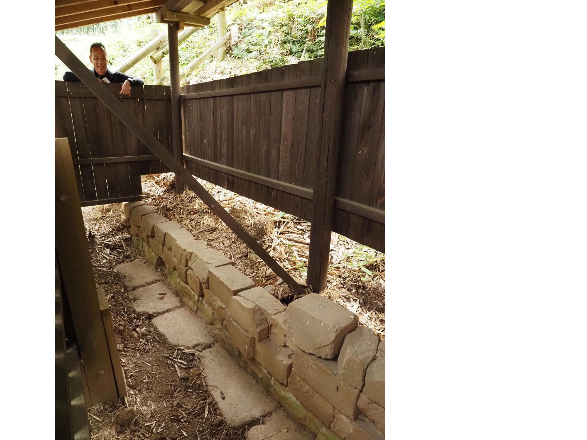 急な階段その2、権現堂古墳の石棺。もうひと頑張り!