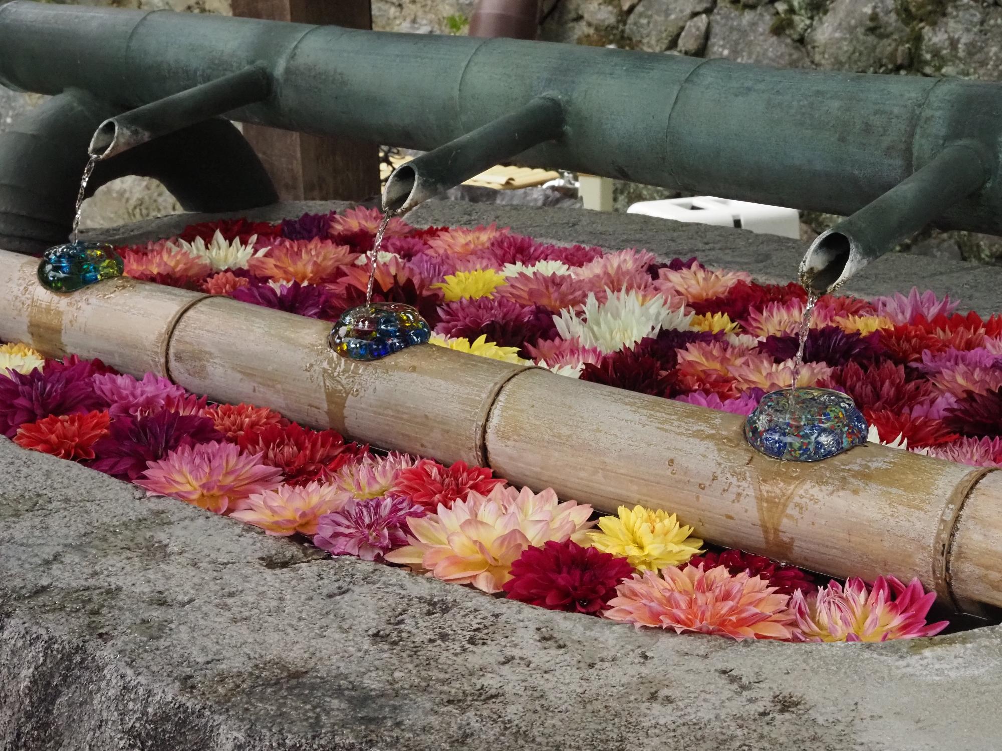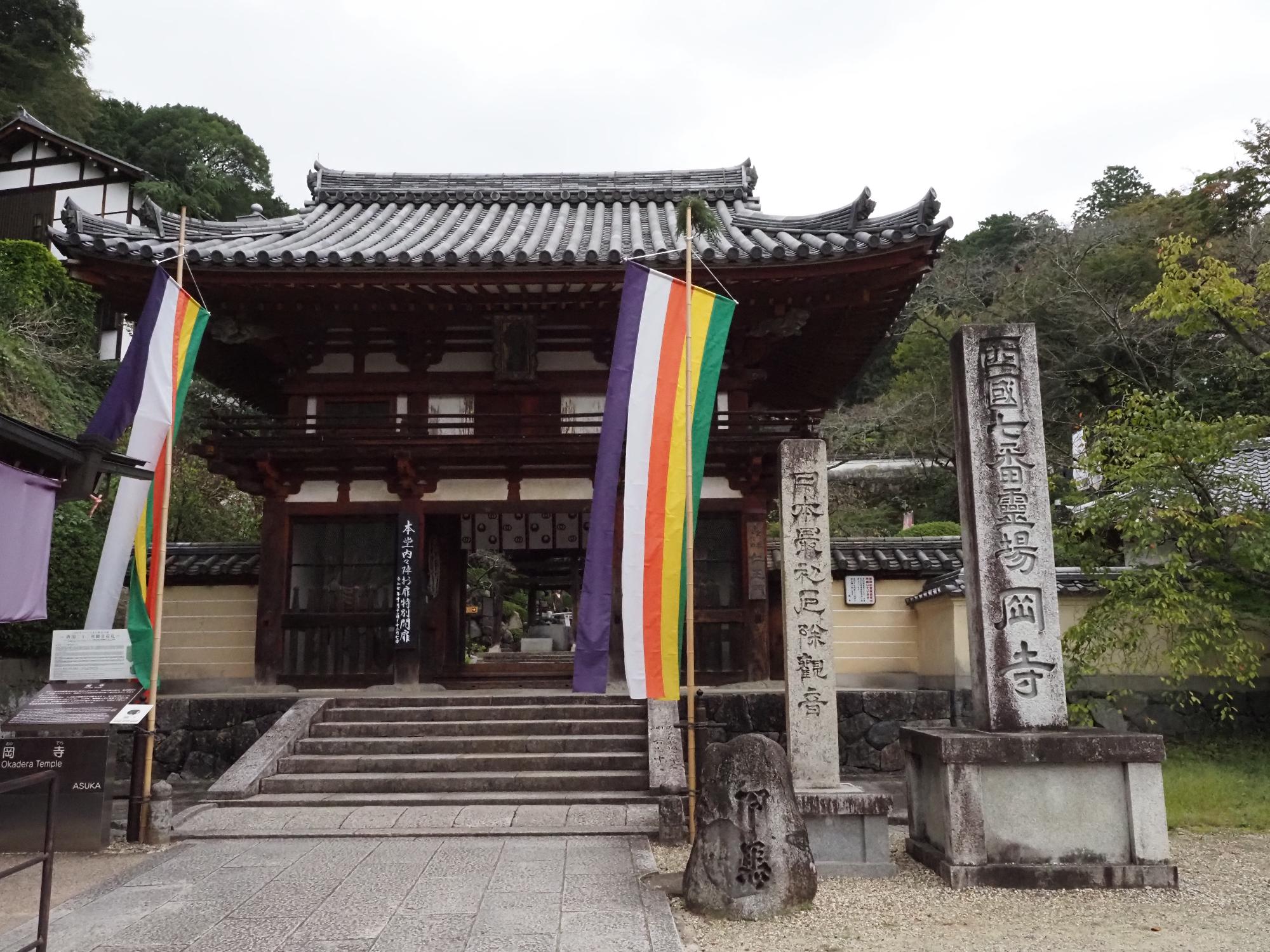 悪さをした龍を封印しているという岡寺。現在はお花がいっぱい!