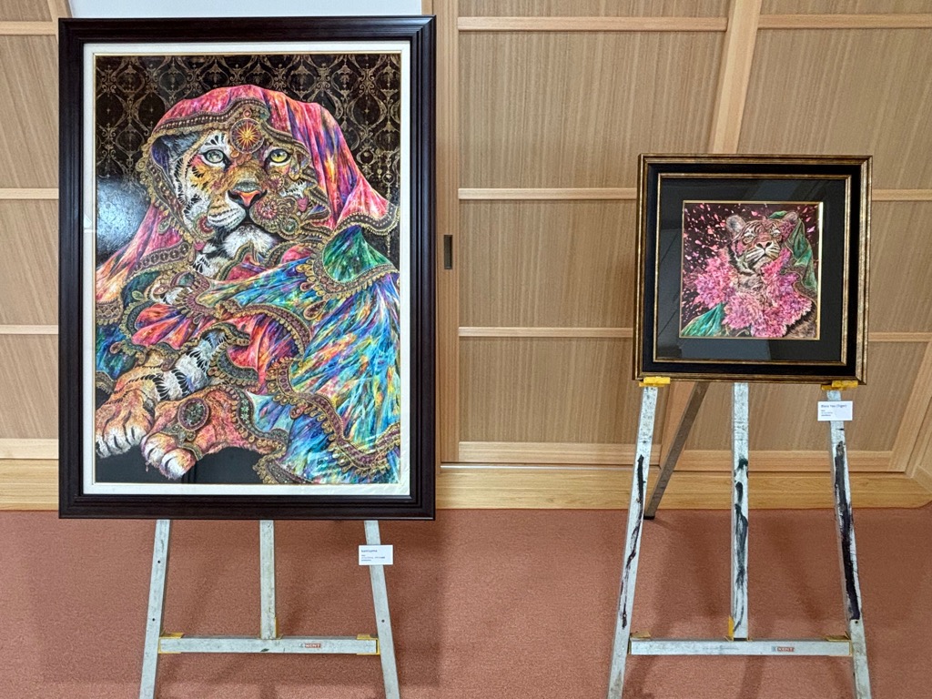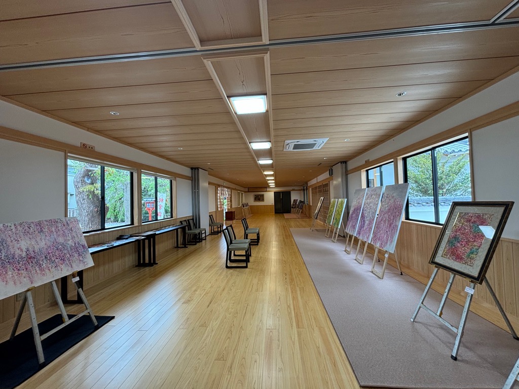 市場稲荷神社の拝殿内で「春」をテーマに個展を開催し、オイルパステルを使い描かれた貴重な原画をたくさんの方々にご覧いただきました。