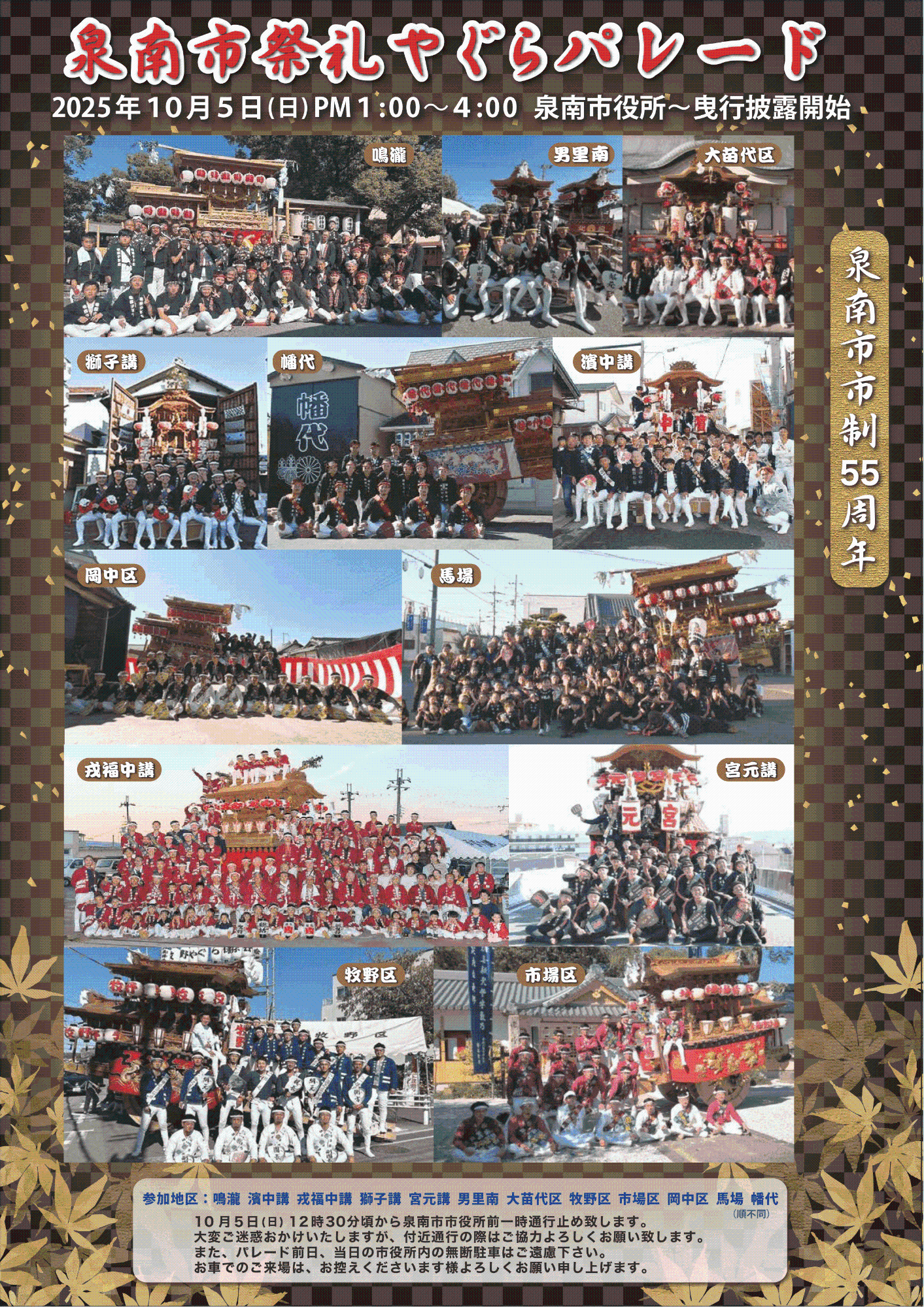 「泉南市祭礼やぐらパレード」に伴う交通規制と市役所利用に関するお知らせとお願い