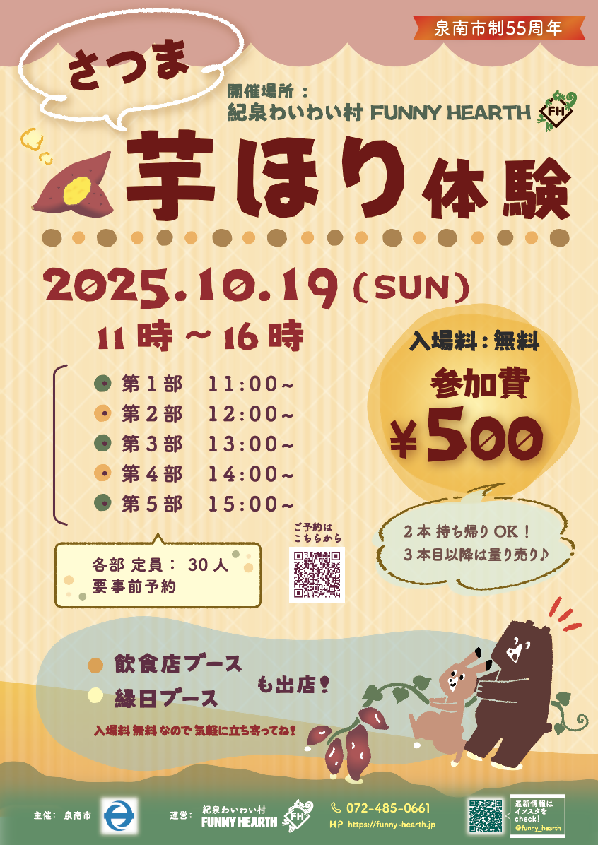 紀泉わいわい村 FUNNY HEARTHで芋ほり体験イベントを開催します!