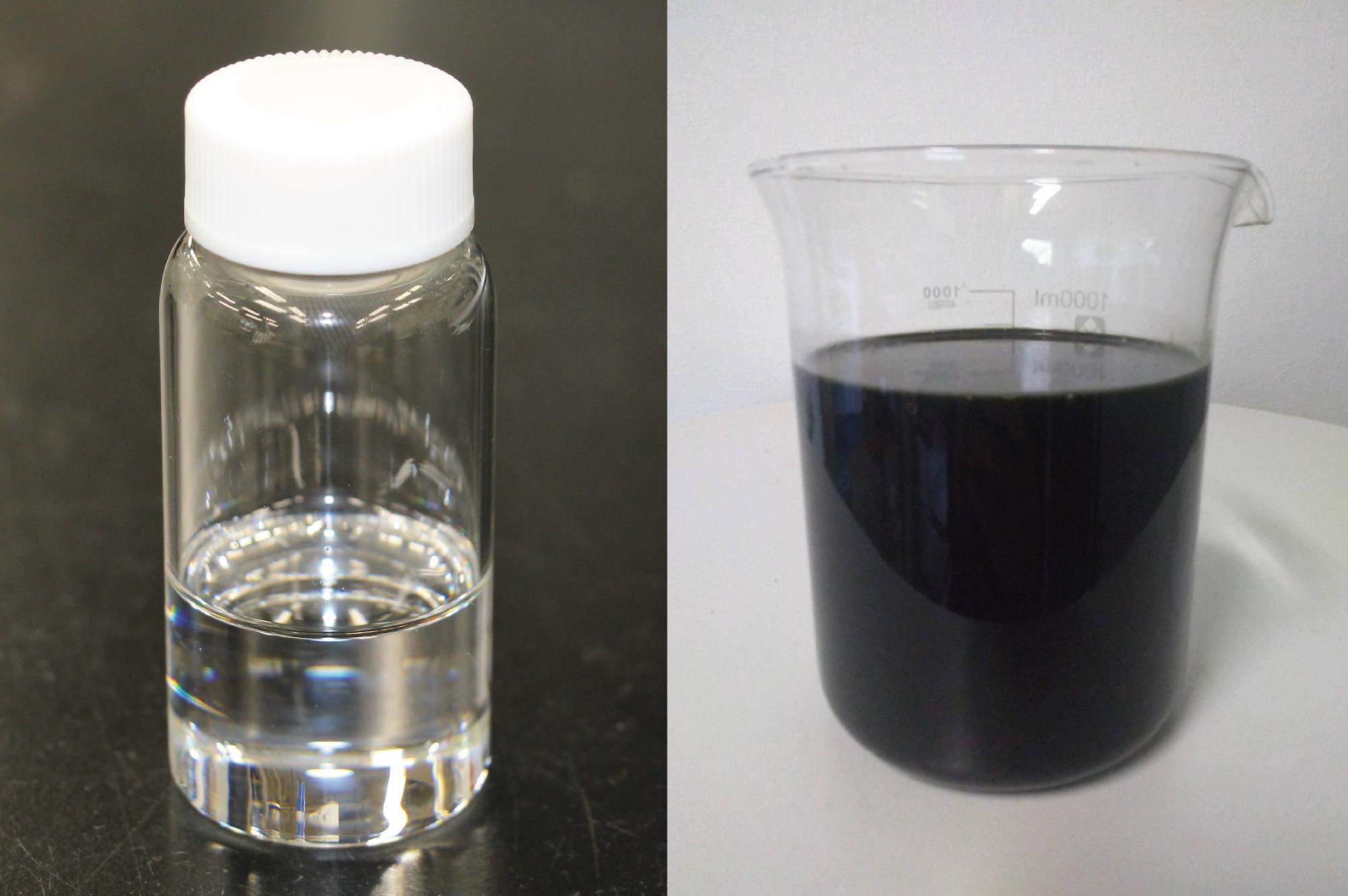 注)本研究により生成されたイソシアネート(写真左)とバイオ液肥(写真右)