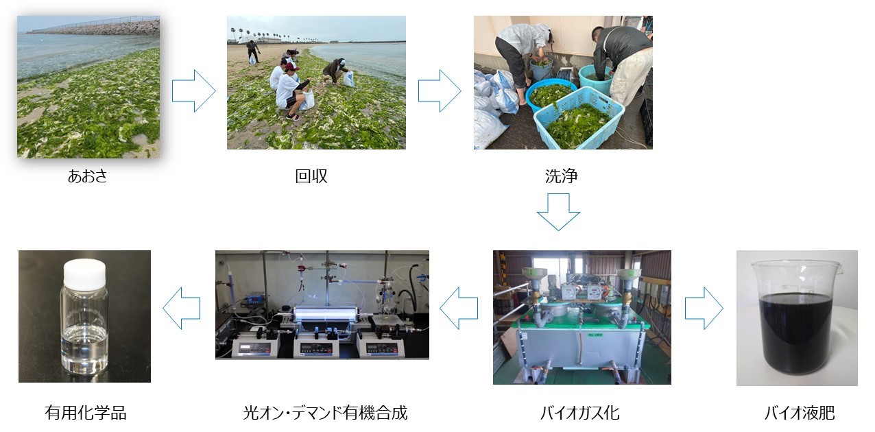 世界初!漂着アオサ由来のバイオガスからポリエステルの原料となるイソシアネートの合成に成功!